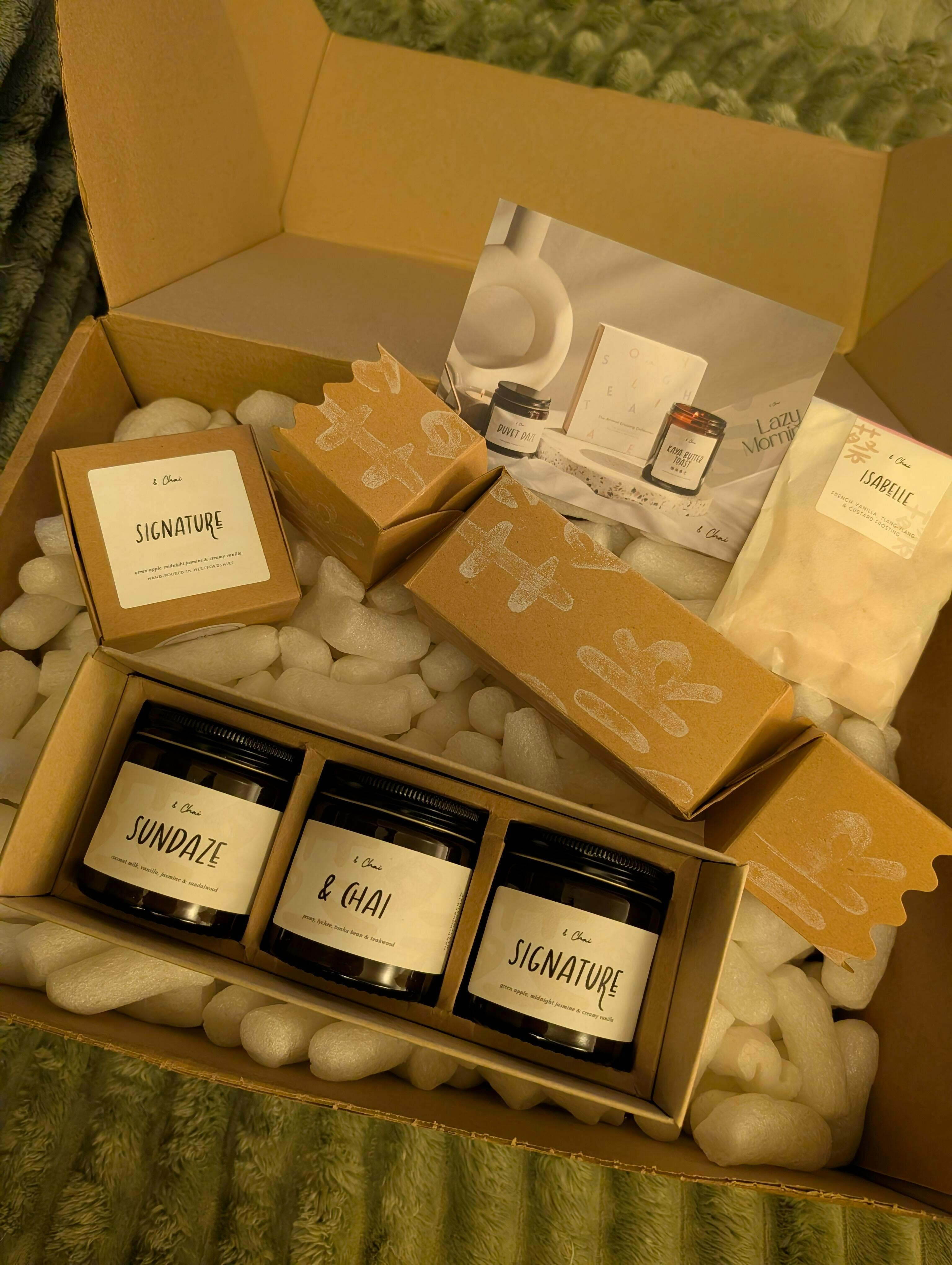Get to know the fragrances that make us ‘us’. The & Chai Collection Soy Candle Trio includes all three of our signature scents. Our bestselling Signature Soy Candle – creamy and fruity, Sundaze – delicate and summery, and the & Chai scent - fresh and curiously warm, bursting with lychee, peony, tonka bean and teakwood notes.